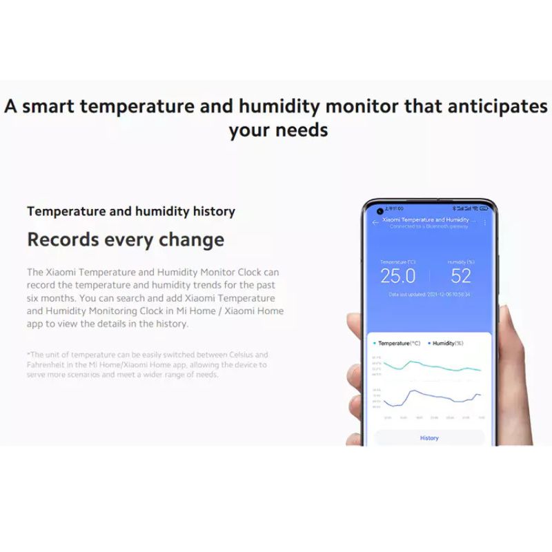 - Bluetooth Smart Connectivity: The meter connects to the Mi Home/Xiaomi Home app via Bluetooth Low Energy 5.0. This allows you to view real-time data, access up to six months of historical temperature and humidity records, and even integrate the device with other smart home appliances.